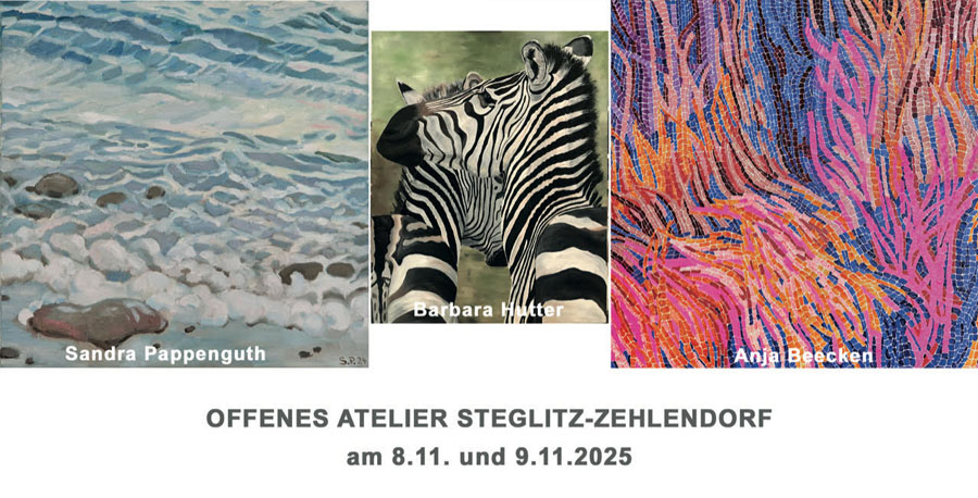 Samstag von 13.00 bis 18.30 Uhr und Sonntag von 13.00 bis 18.00 Uhr Galerie am kleinen Wannsee, Bismarckstraße 65, 14109 Berlin- Wannsee.